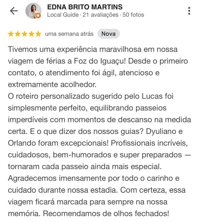 Com mais de 15 anos de experiência, Valdecir Orlando é um guia de turismo que vai além de mostrar os pontos turísticos de Foz do Iguaçu. Ele se dedica a proporcionar uma experiência única e inesquecível para cada passageiro, com seu atendimento impecável e personalizado.